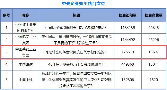 1月3日,國務院國資委新聞中心聯合清華大學新聞與傳播學院、中國企業聯合會,發布“2025年度中國企業新媒體指數”,通過平臺作品數、播放量、點贊數、評論數等維度綜合評估,評選出各中央企業在微信、微博、視頻號、抖音、快手、今日頭條、知乎、Bilibili等新媒體平臺的5部熱門作品。 兵器工業集團兩部作品入選,其中: 《亮家底兒,曬太陽!西藏軍區某裝備保養大場面來了!》入選中央企業今日頭條熱門文章。 《你是什么時候意識到抗日戰爭很艱難的?》入選中央企業知乎熱門文章。 |