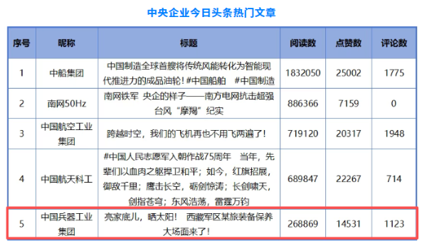 兵器工業集團2篇文章入選中央企業新媒體“熱門文章” |